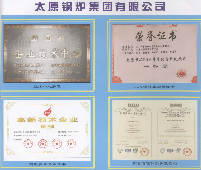 太原锅炉集团有限公司是国家A级锅炉制造单位,公司占地面积68万㎡,资产总值6.7亿元,现有职工2000人,公司拥有一批从事热能、电力、环保等专业的高级技术人才,其中教授级高工5名,高级工程师50名,工程师185名,其它技术人员735名。公司是华北地区最大的锅炉制造企业。公司拥有A级锅炉和三类压力容器设计制造许可证,同时是中国循环流化床锅炉、层燃锅炉、余热锅炉、垃圾焚烧锅炉、燃气锅炉、压力容器、气力输送、粉煤灰分选和水处理设备的重要研发和制造基地。