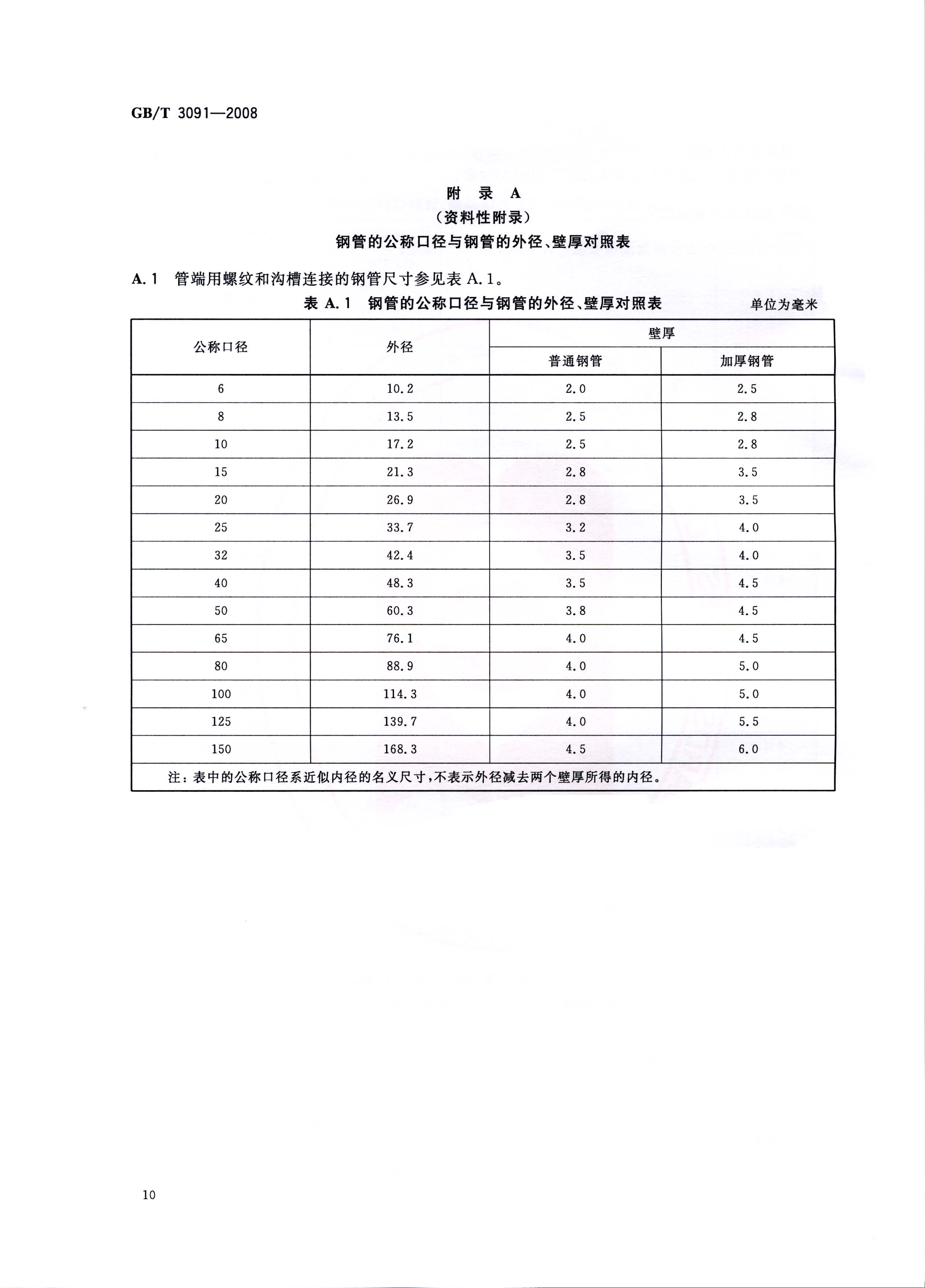 适用于GB/T 3091-2008低压流体输送用焊接钢管标准